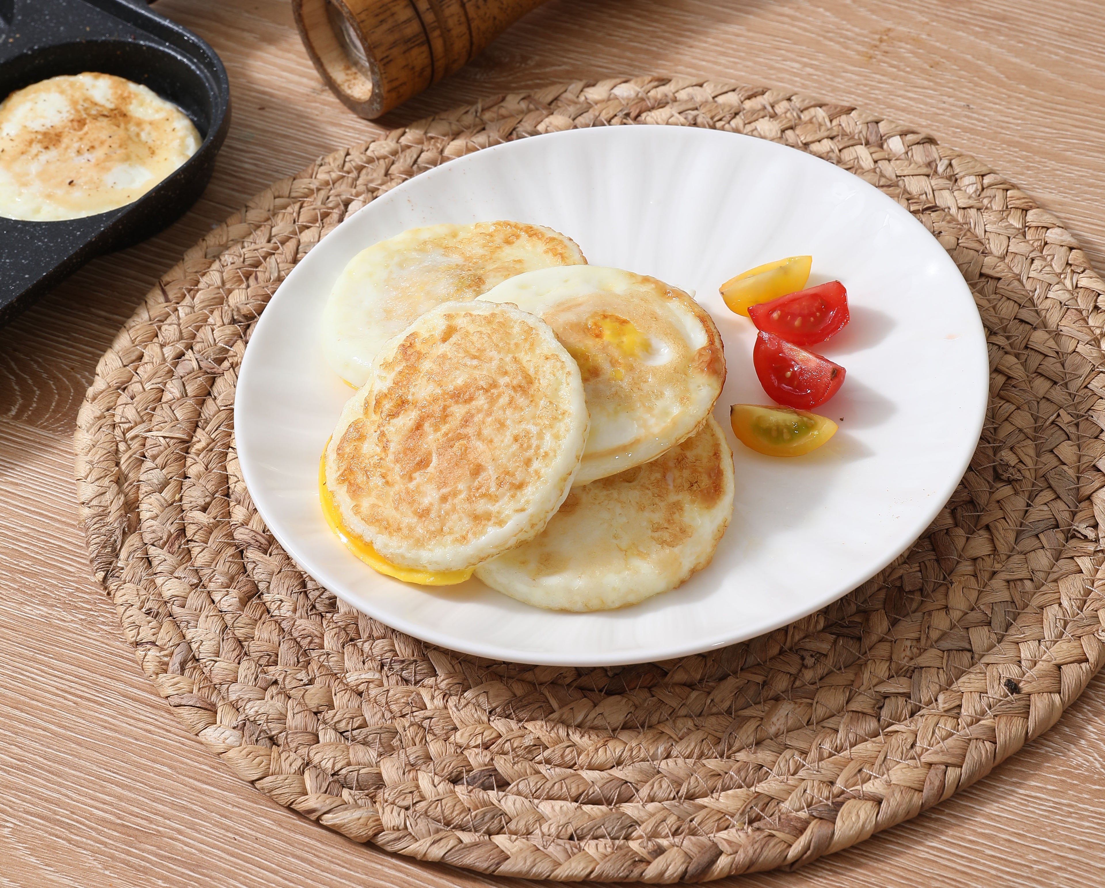 Foorey Home Egg Pan 4 Cup Nonstick Frying Omelette Pan with Lid for Breakfast Skillet for Eggs Pancake with 1 Spatula 1 Brush