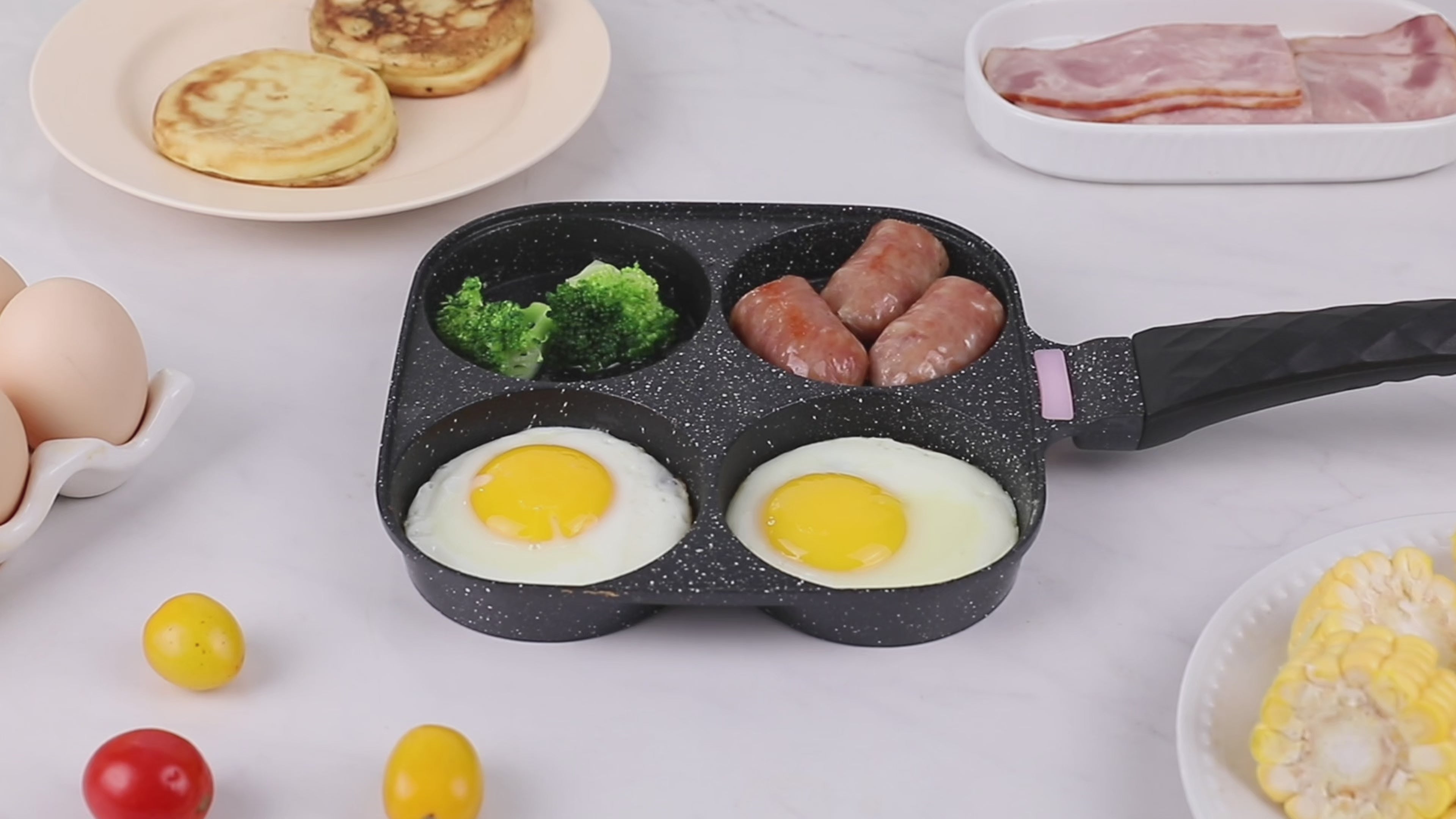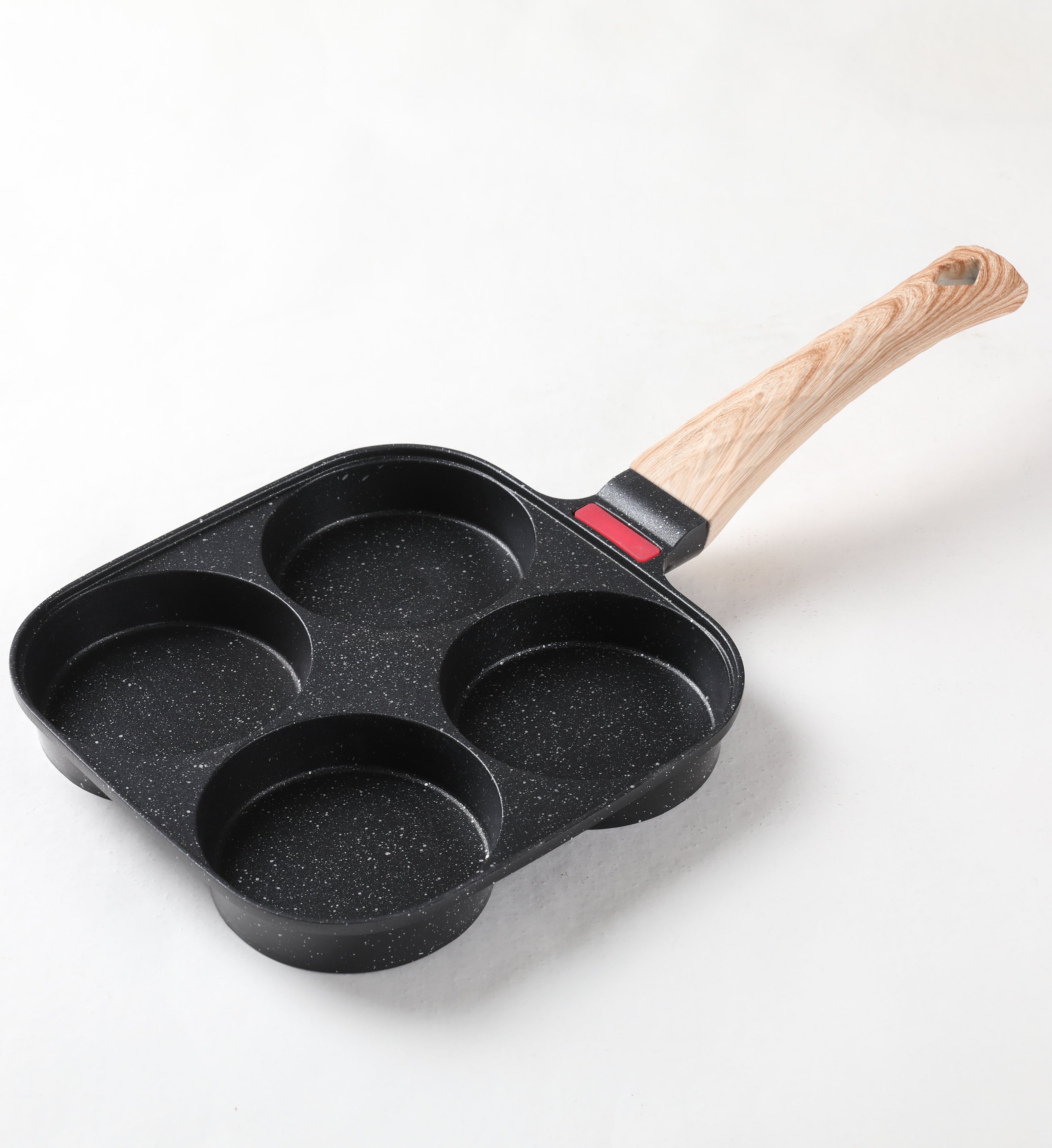 Foorey Home 4 Egg Frying Pan Gas Only Breakfast Omelette Skillet Non-Stick Fried Egg Pan Pancake Pan with 1 Spatula 1 Brush Black